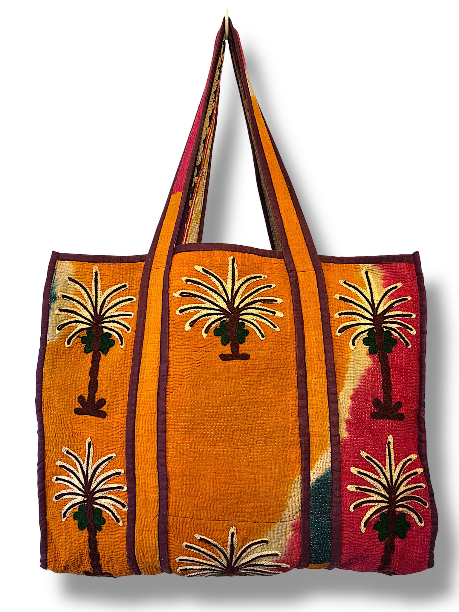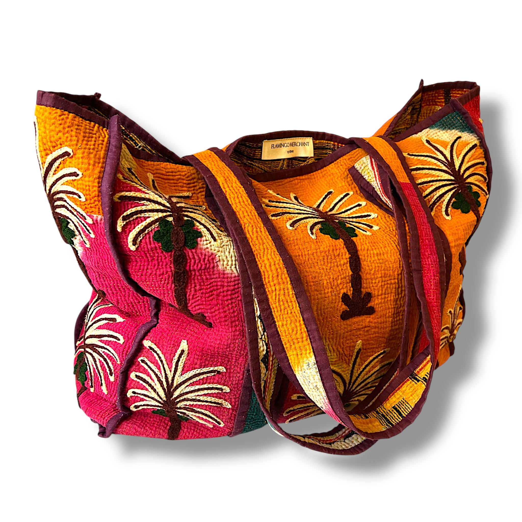 Our beautiful Dharma bags have been repurposed from vintage Kantha textile and then accentuated with our embroidered motifs.   Hand stitched and 100% cotton, these quirky fabulous one off pieces are sure to become your favourite.