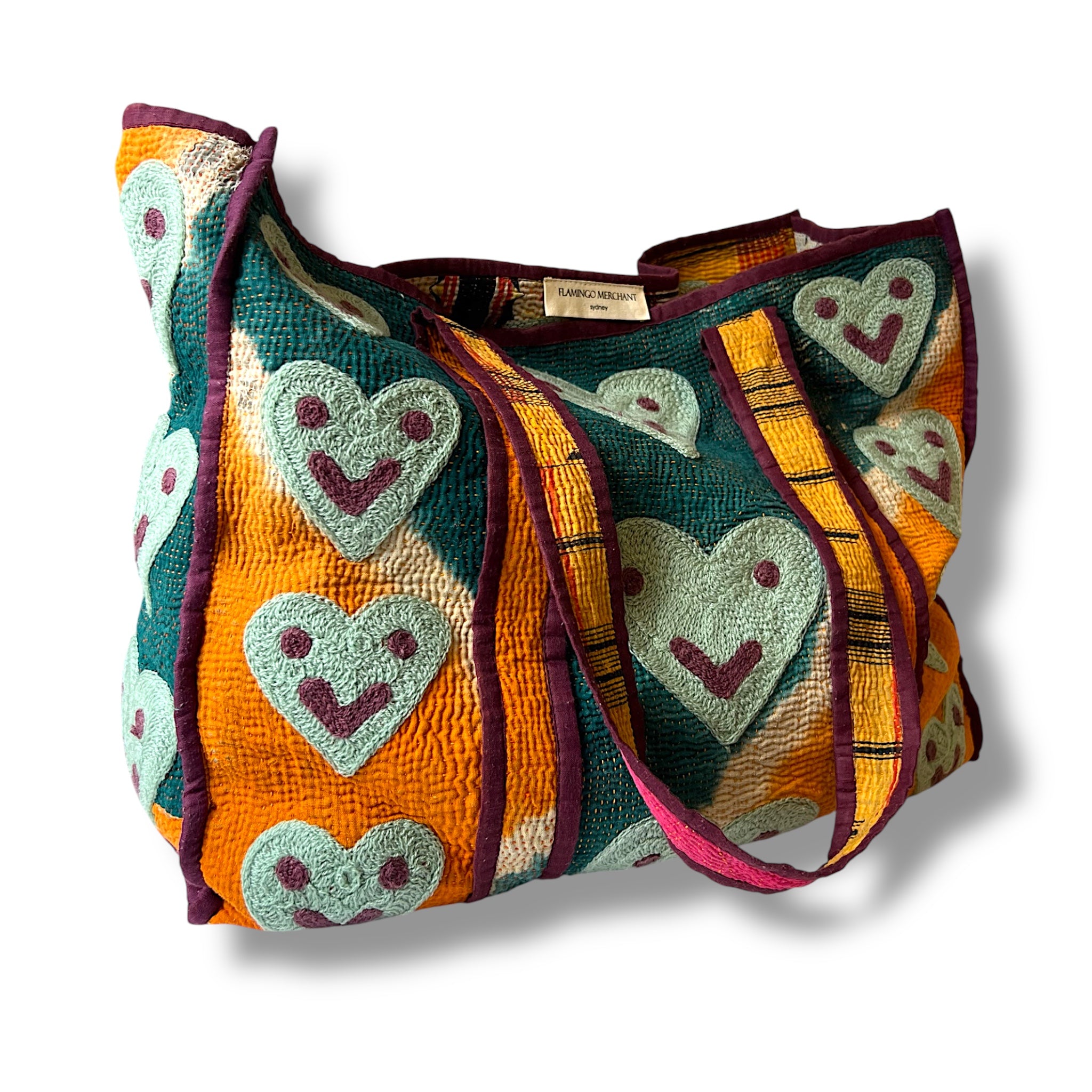 Our beautiful Dharma bags have been repurposed from vintage Kantha textile and then accentuated with our embroidered motifs. Hand stitched and 100% cotton, these quirky fabulous one off pieces are sure to become your favourite.