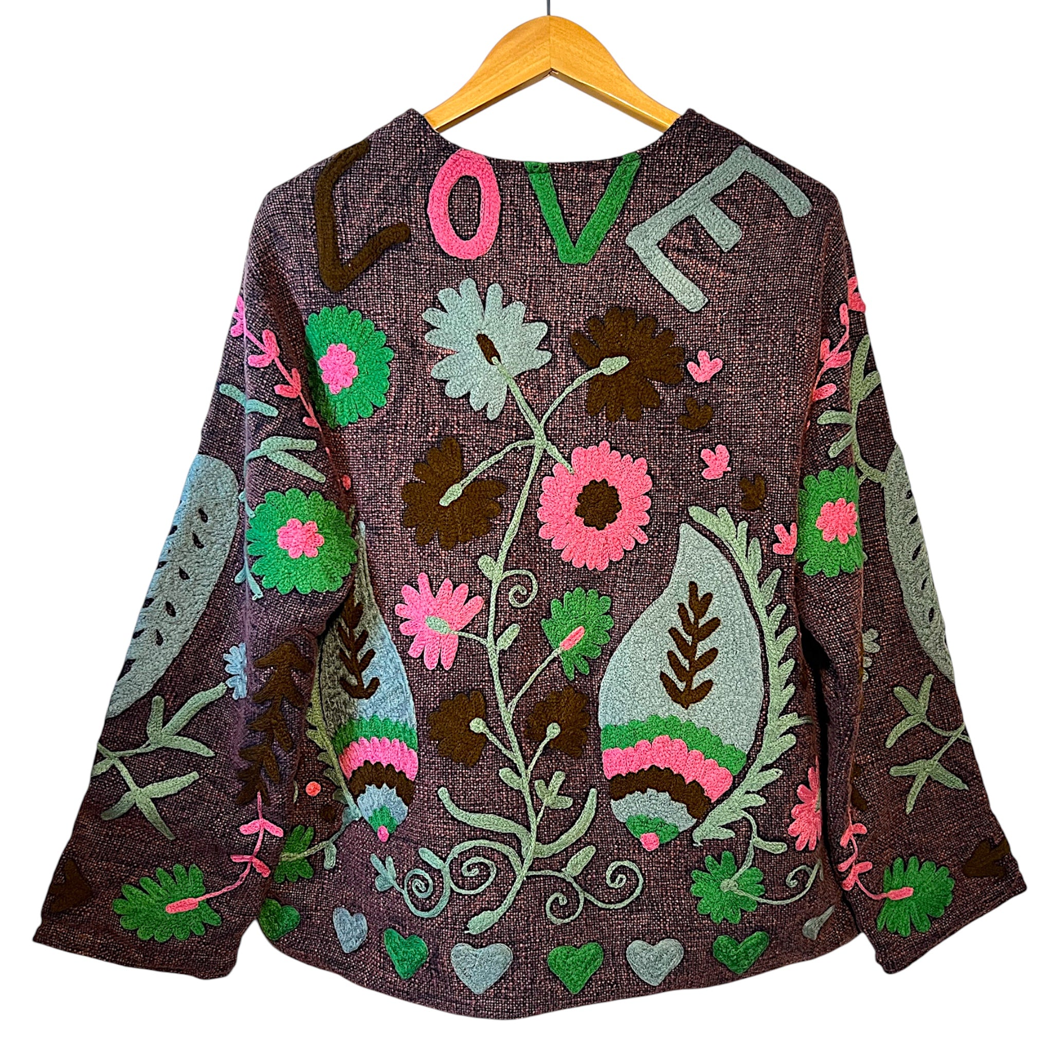 Beautiful hemp embroidered love jacket with 100% cotton lining.