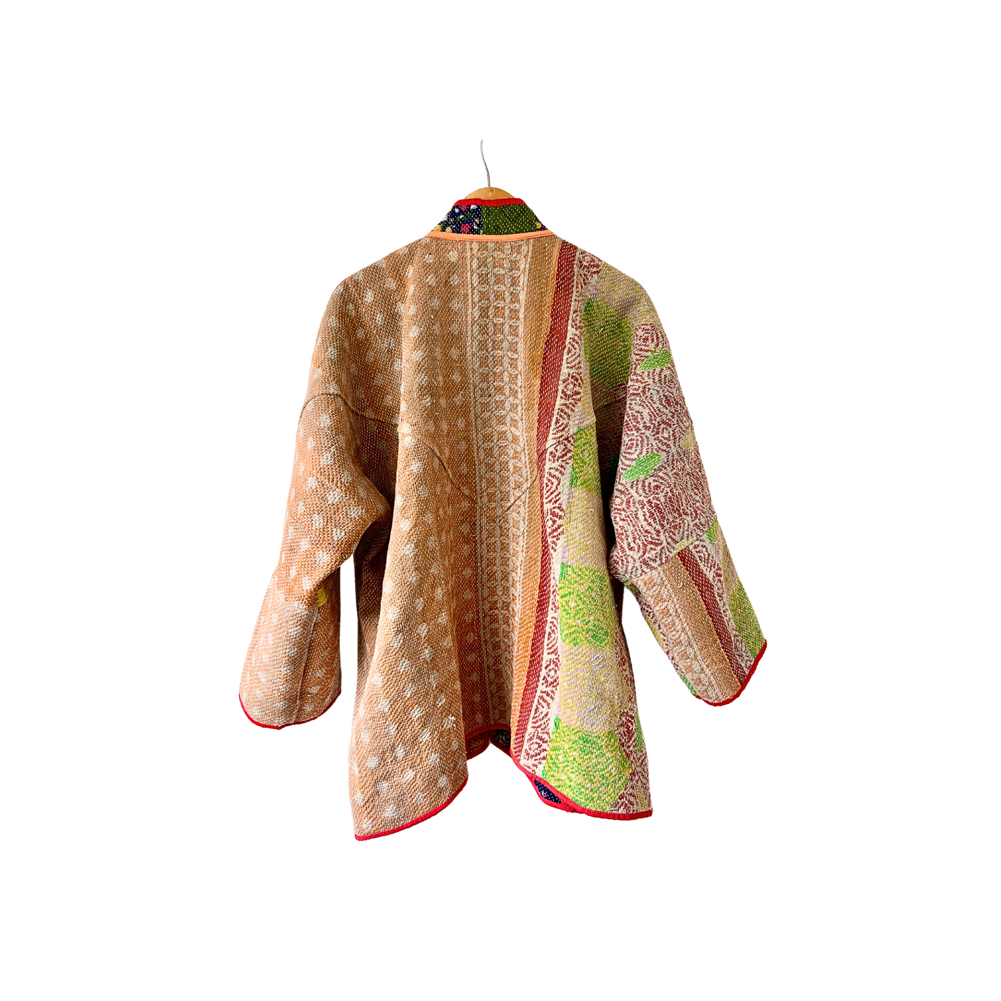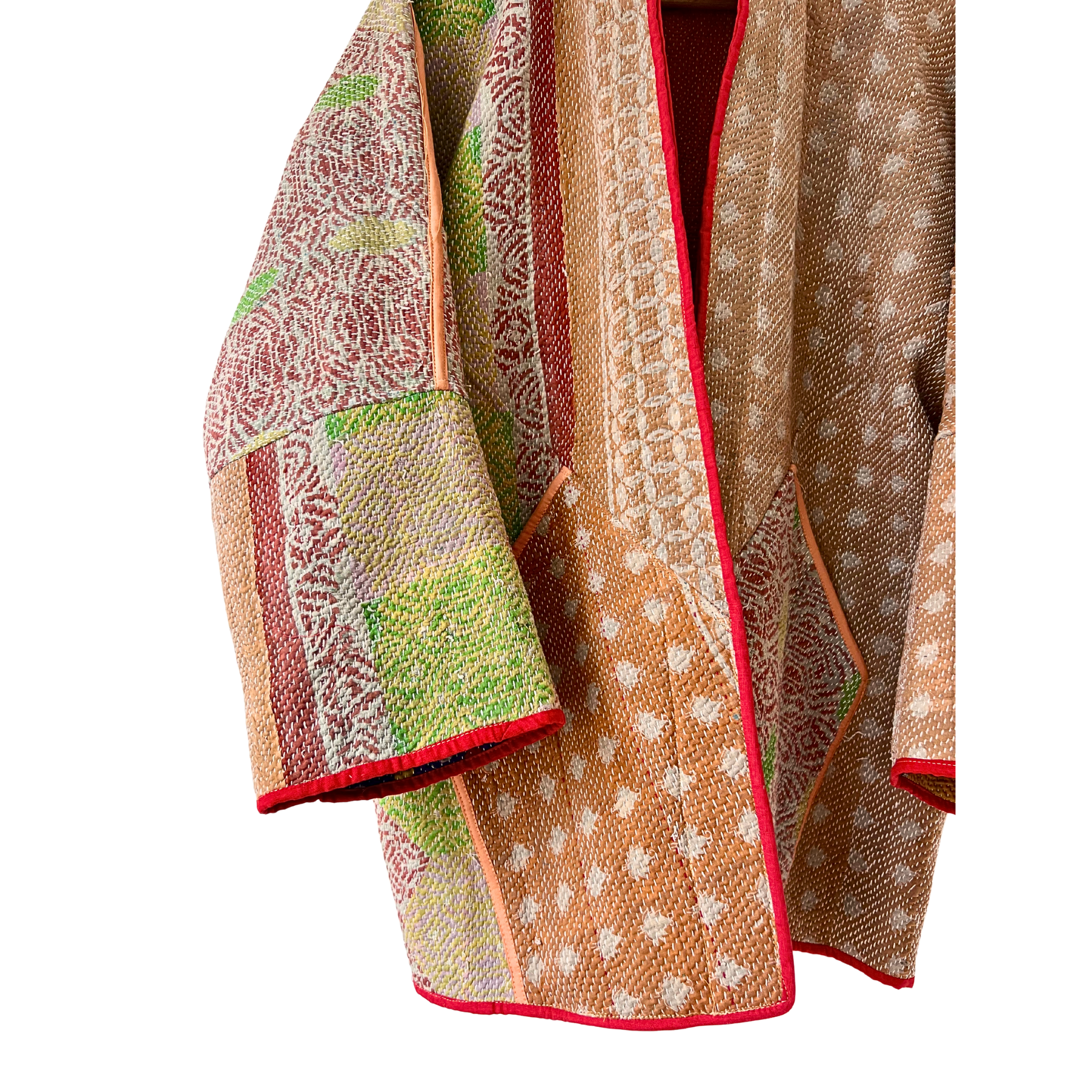 This jacket has been repurposed from vintage Kantha textile. Fabulous oversized fit, fully reversible with pockets on both sides. Unisex and one size fits all. 100% cotton.