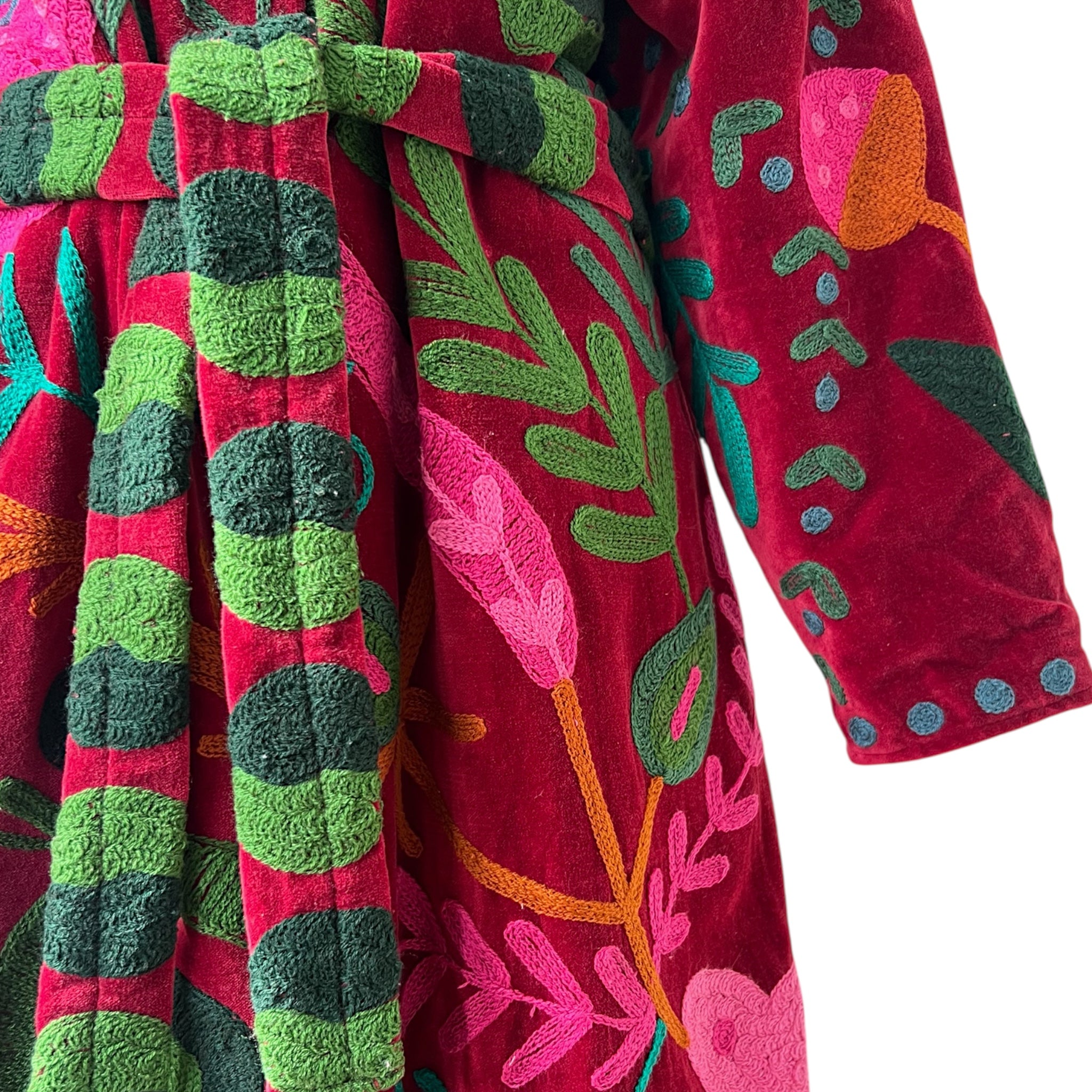 Anvi is a beautiful long velvet embroidered coat with cotton lining.