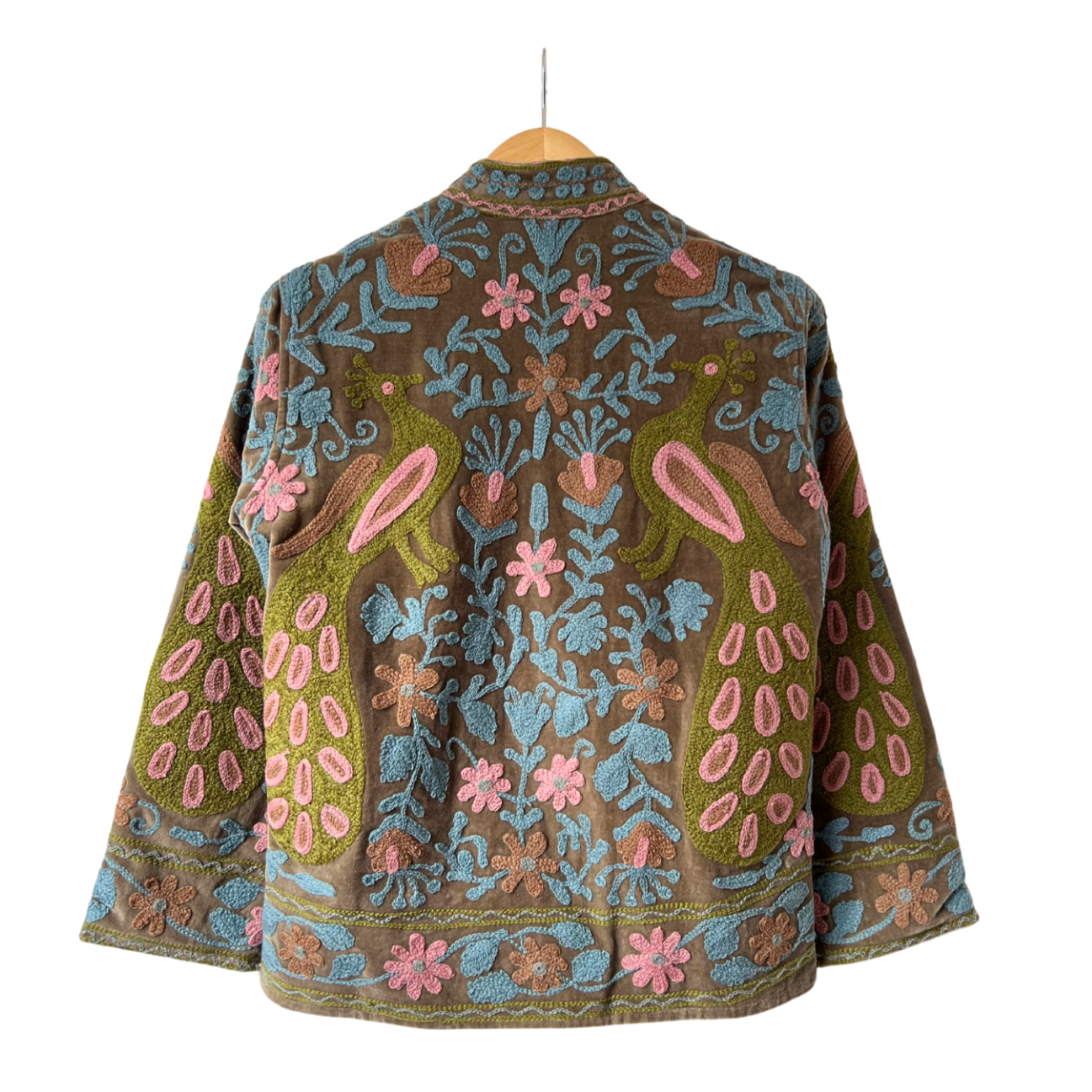 • Load image into Gallery viewer, Velvet embroidered peacock jacket