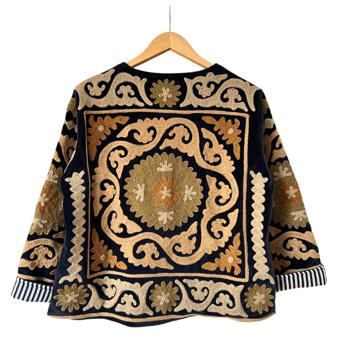 Beautiful embroidered jacket with Suzani motif and stripe cotton lining