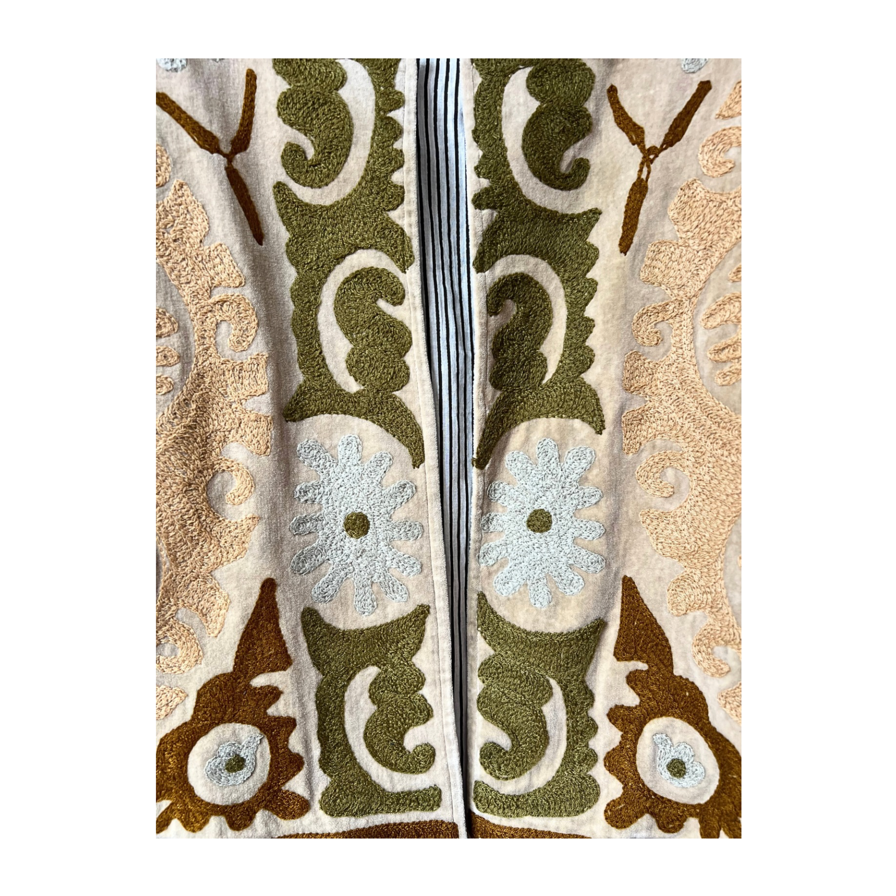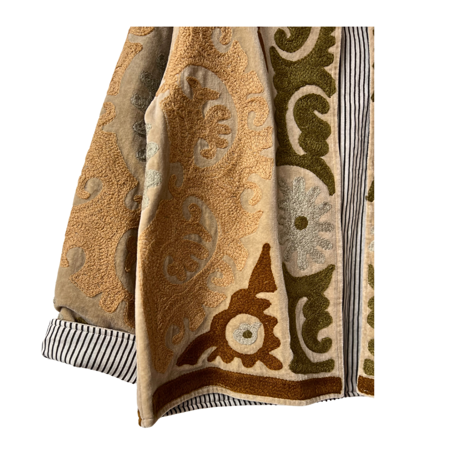 Beautiful embroidered velvet jacket with Suzani motif and stripe cotton lining