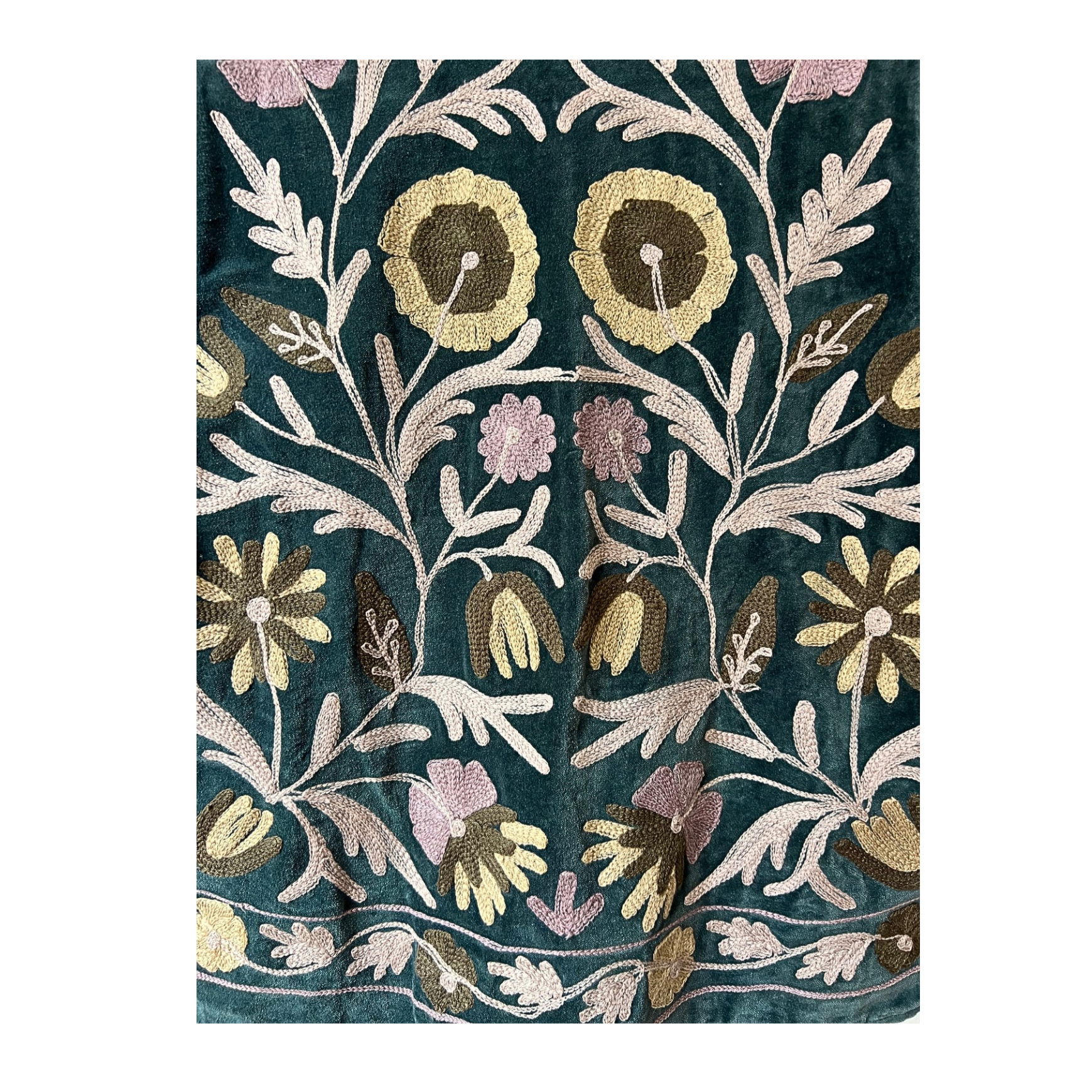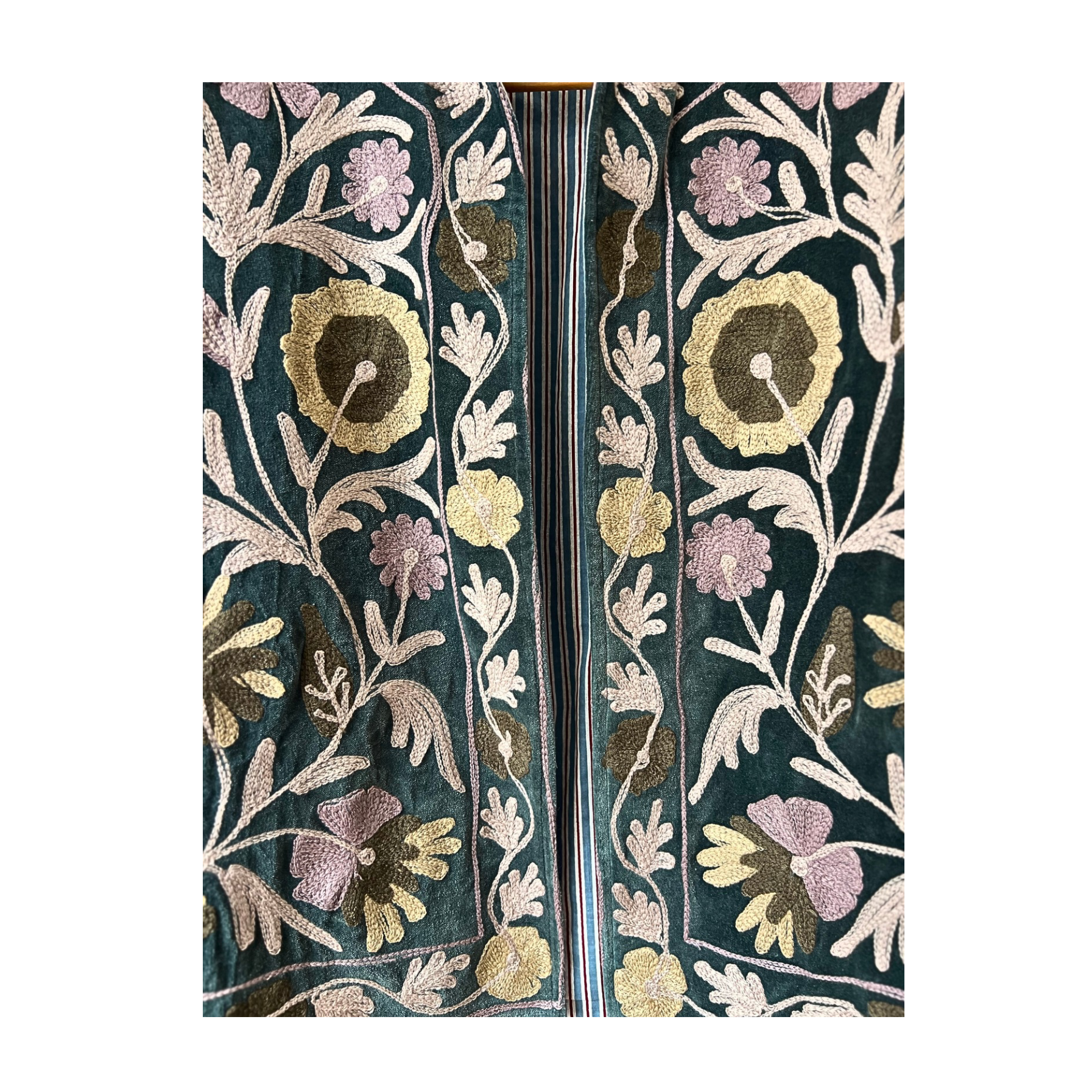 Beautiful embroidered velvet jacket with floral motif and stripe cotton lining
