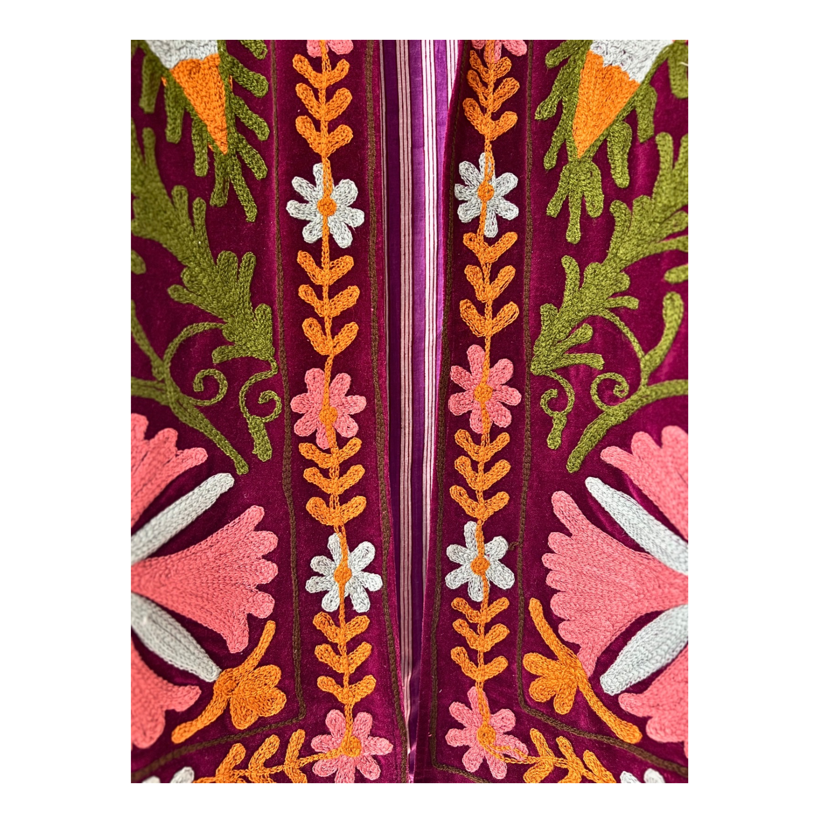 Beautiful embroidered jacket with floral motif and stripe cotton lining