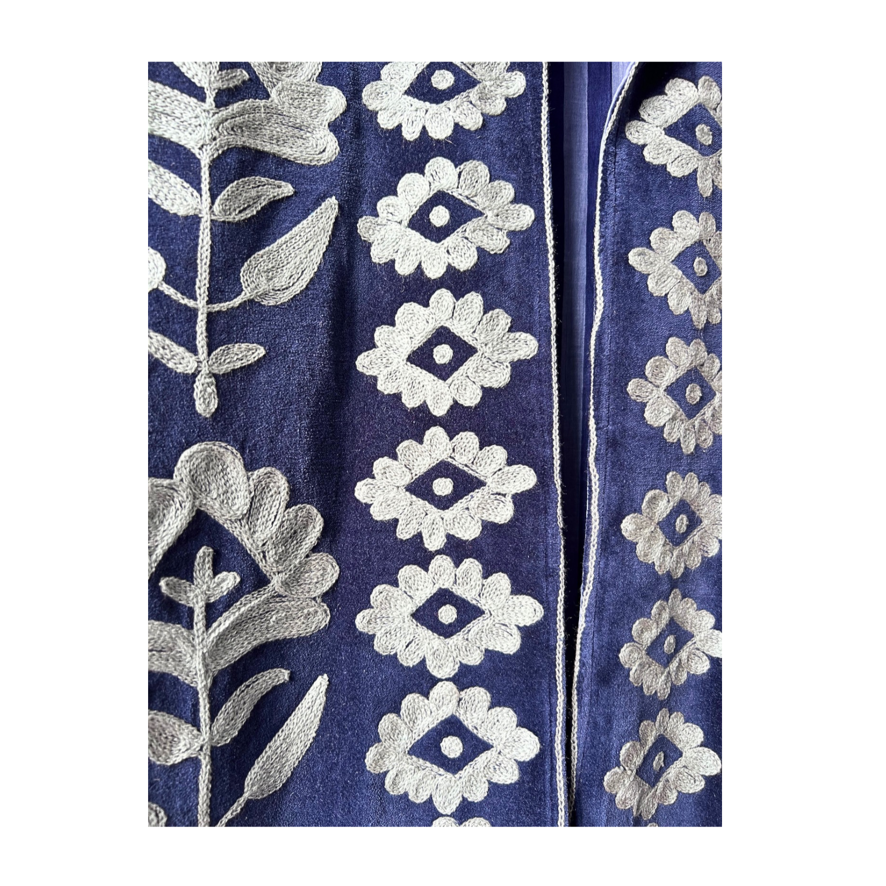 Beautiful embroidered jacket with Suzani motif and stripe cotton lining