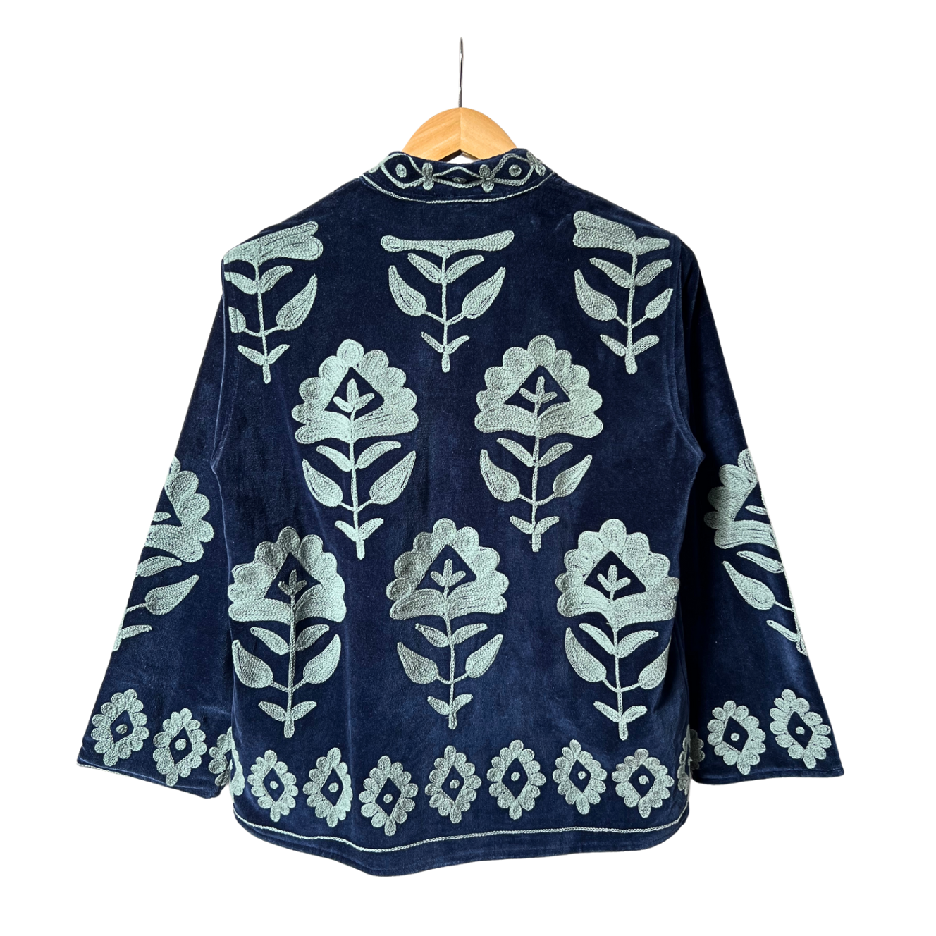 • Load image into Gallery viewer, Velvet embroidered flora jacket