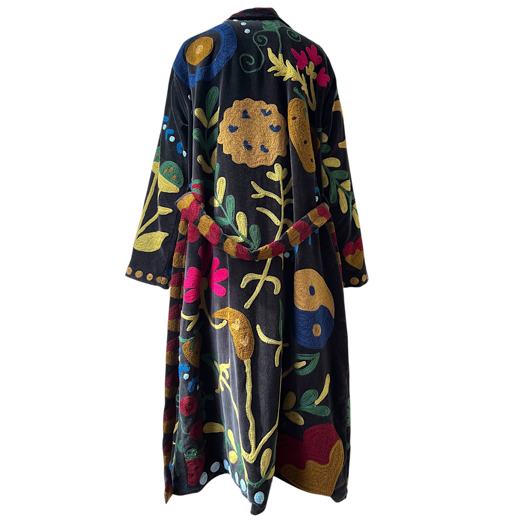 Anvi is a beautiful long embroidered velvet coat with cotton lining.