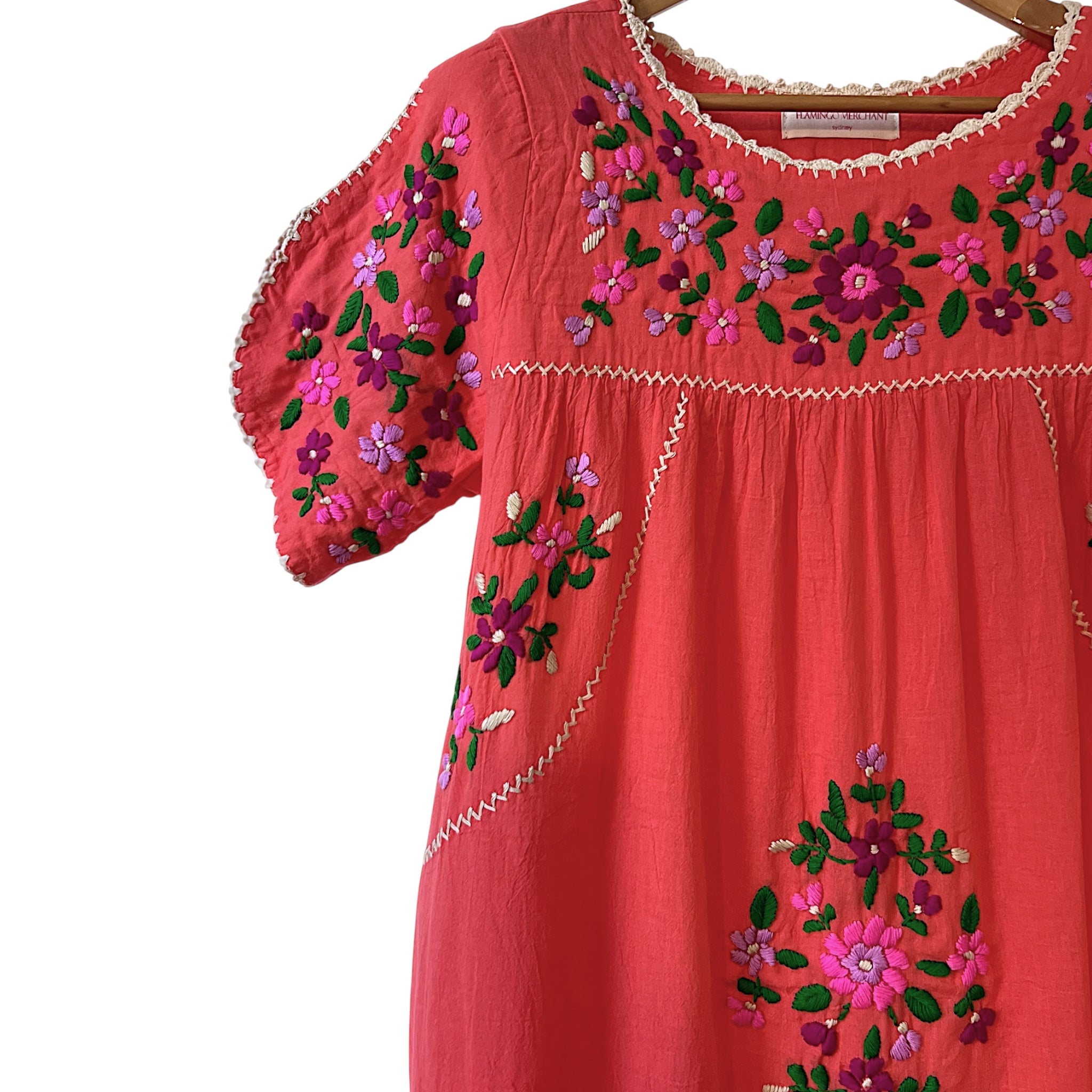 A lovely new edition to our embroidered dress range.  Carmelita is Margarita’s little sister, slightly shorter in length but with more coverage on the sleeve.  She has beautiful crocheted features on neckline and armholes and is Oh so easy to slip into for the Spring/Summer sunshine… Carmelita will be your go to dress for those warmer days.