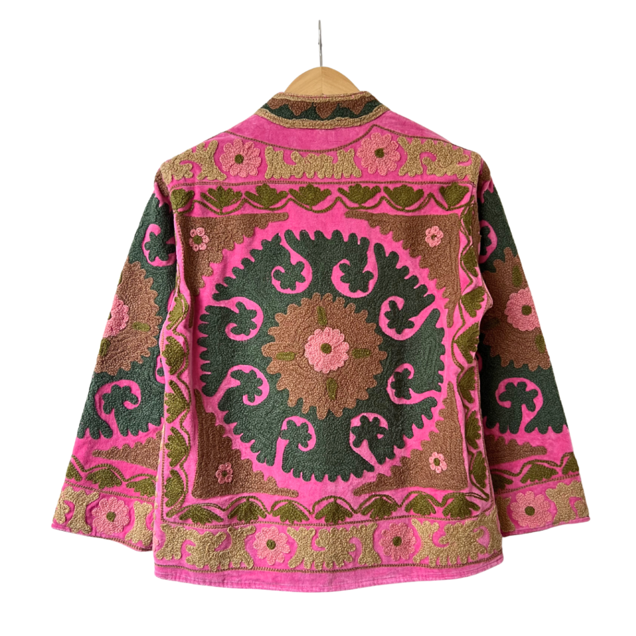 Beautiful embroidered jacket with Suzani motif and stripe cotton lining